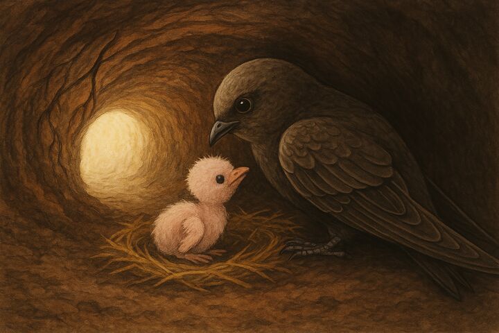 Стрижонок согрелся под крылом и задремал. Стук капель дождя напомнил ему, как мама стучала клювом по скорлупе яйца, выпуская его в большой мир.