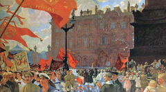 «У главного подъезда монументального здания было большое скопление карет и автомобилей». Подошла к швейцару женщина, попросила разрешения постоять, полюбоваться на разных особ, а звали её Россия. Эти особы мимо проходят, а англичанин зантересовался, не прячет ли она бомбу у себя в котомке. Подошёл, поговорил, обещал помочь. И побрела она восвояси, с надеждой на скорую помощь.