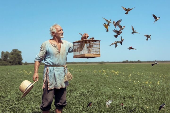 Старый лесник во время войны потерял маленькую внучку. Чтобы утешиться, он покупал птиц и отпускал их на волю. Когда местные жители перестали приносить птиц, он вновь погрузился в тяжёлое отчаяние.