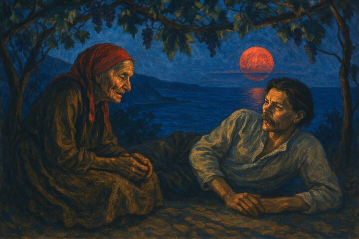 Собирая виноград в Бессарабии, на берегу Чёрного моря, рассказчик познакомился и разговорился со старой Изергиль.
