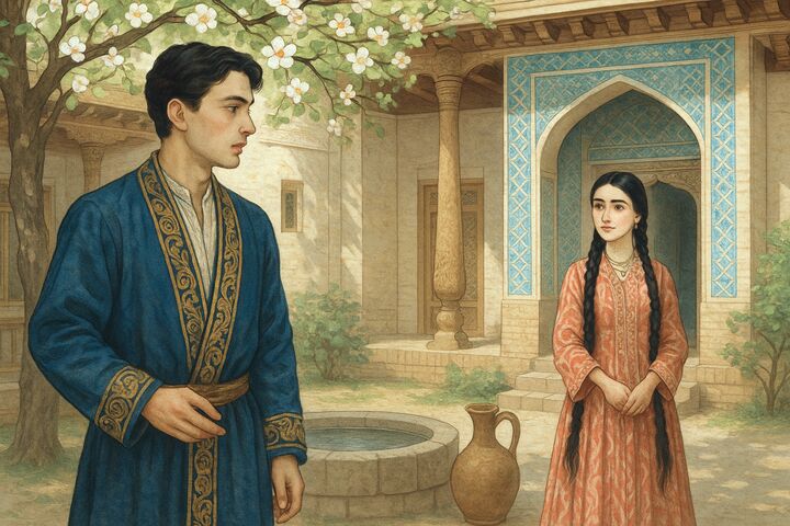 Однажды Атабек зашёл в чужой двор взять воды, увидел там девушку и влюбился.