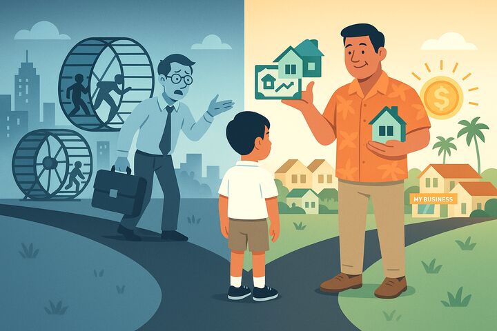 Пример. Повар, который учился кулинарному искусству в школе и знает все хитрости торговли. Его профессия приносит достаточно денег, чтобы заплатить за квартиру и прокормить свою семью, но он всё равно не становится богатым. Поэтому он инвестирует в бизнес: недвижимость. Все лишние деньги он тратит на покупку апартаментов и квартир, которые можно сдавать.