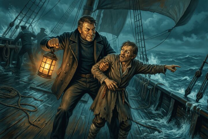 Это увидели другие матросы, тут же скрутили обоих приятелей и доложили капитану. Тот велел запереть их в трюме и обеспечить спиртным и едой.