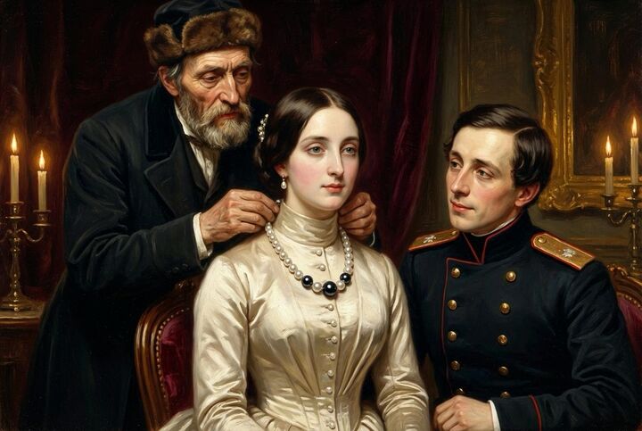 Молодые люди понравились друг другу и решили пожениться. Рассказчик не ожидал такого развития событий и поссорился с женой. Он предупреждал, что отец Машеньки — на редкость скупой: он уже провёл двух старших зятьёв, не дав ничего в приданое. Но жена настаивала на своём, и вскоре жених и невеста обручились. На Новый год отец подарил Машеньке жемчужное ожерелье.