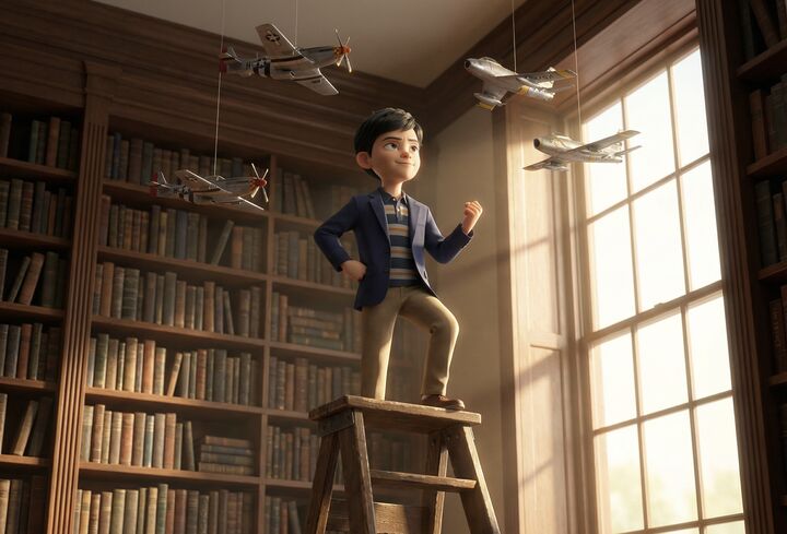 Под потолком комнаты висели десятки игрушечных самолётов. Малыш ходил взад-вперёд, всерьёз задумавшись о чём-то. Сестру беспокоило его молчание. Малыш прочёл о жизни цезарей и теперь сомневался: сможет ли он быть таким же бессердечным, как настоящий правитель. Чтобы проверить это, он решил манипулировать родителями.