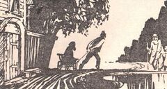 Миша оглянулся и увидел на улице господ с тоненькими ножками и длинными носами. Они ходили и шептали: «Тук-тук-тук! Поднимай! Задевай!». Миша подошёл к ним и вежливо спросил, зачем они колотят бедных мальчиков-колокольчиков.