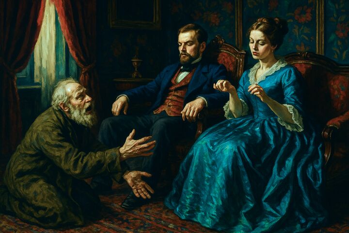Богатый купец решил объявить себя банкротом, чтобы не платить кредиторам. Он переписал своё имущество на зятя, надеясь, что тот его не оставит. Но зять обманул купца, а дочь отреклась от него.