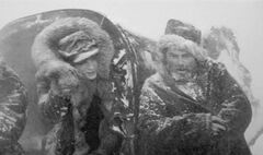 В степи путники попали в снежную бурю и заблудились, но наткнулись на мужика, который вывел их к людям. В благодарность Гринёв подарил ему заячий тулуп.