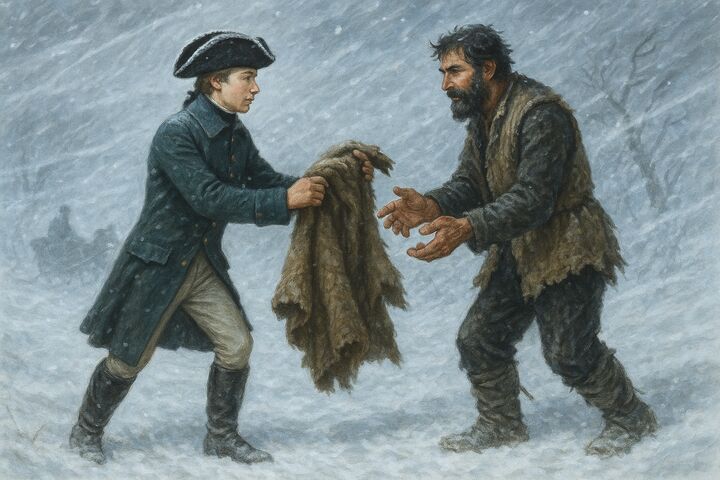 Бунтовщики захватили гарнизон, убили капитана и хотели повесить Гринёва, но его узнал главарь бунтовщиков — Пугачёв. Как-то зимой тот остался без тёплой одежды, а Гринёв подарил ему заячий тулуп.