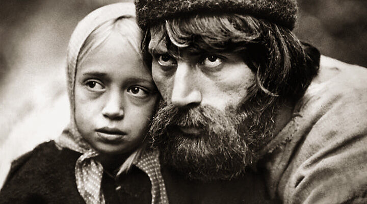 - — бедный мужик в лохмотьях, с длинной растрёпанной бородой.
